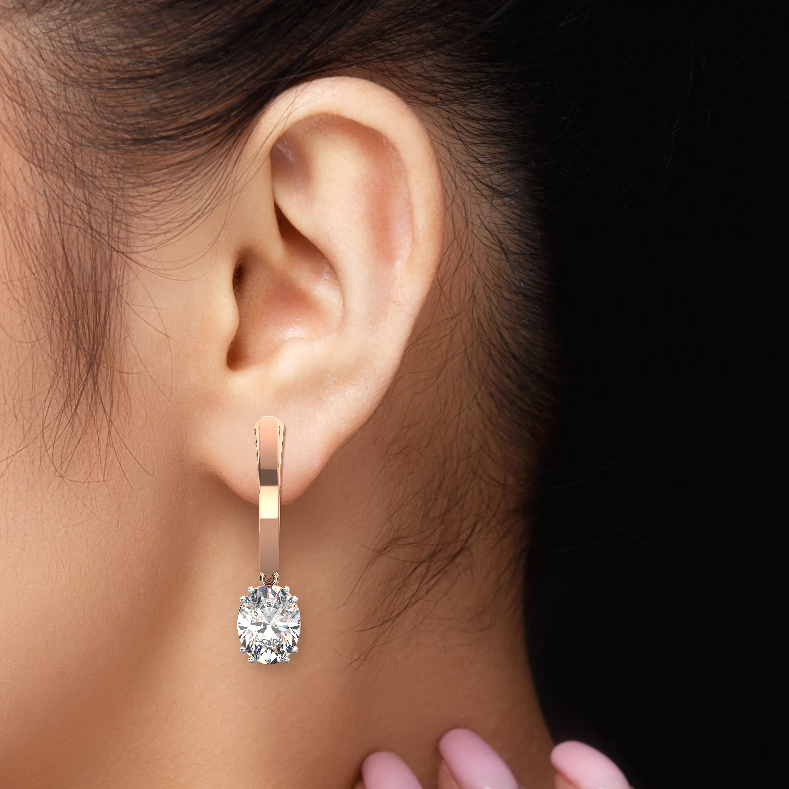 The Eternal Oval Drop Earrings feature a sleek, modern design with a brilliant oval-cut diamond drop, offering a perfect blend of sophistication and grace.