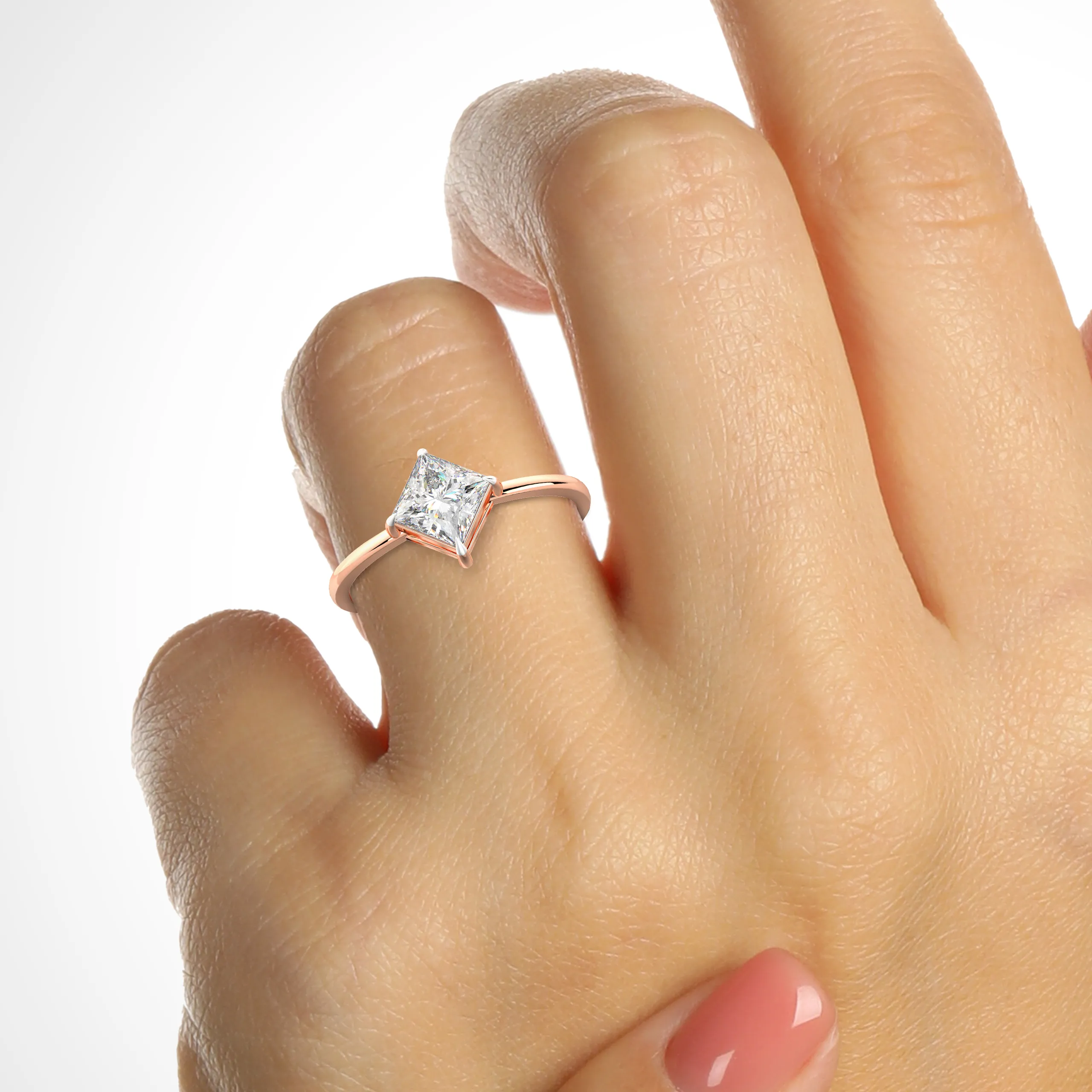 The Astria Princess Solitaire Ring features a dazzling princess-cut diamond in a sleek, modern setting. A perfect blend of sophistication and timeless beauty, ideal for engagements or everyday luxury.