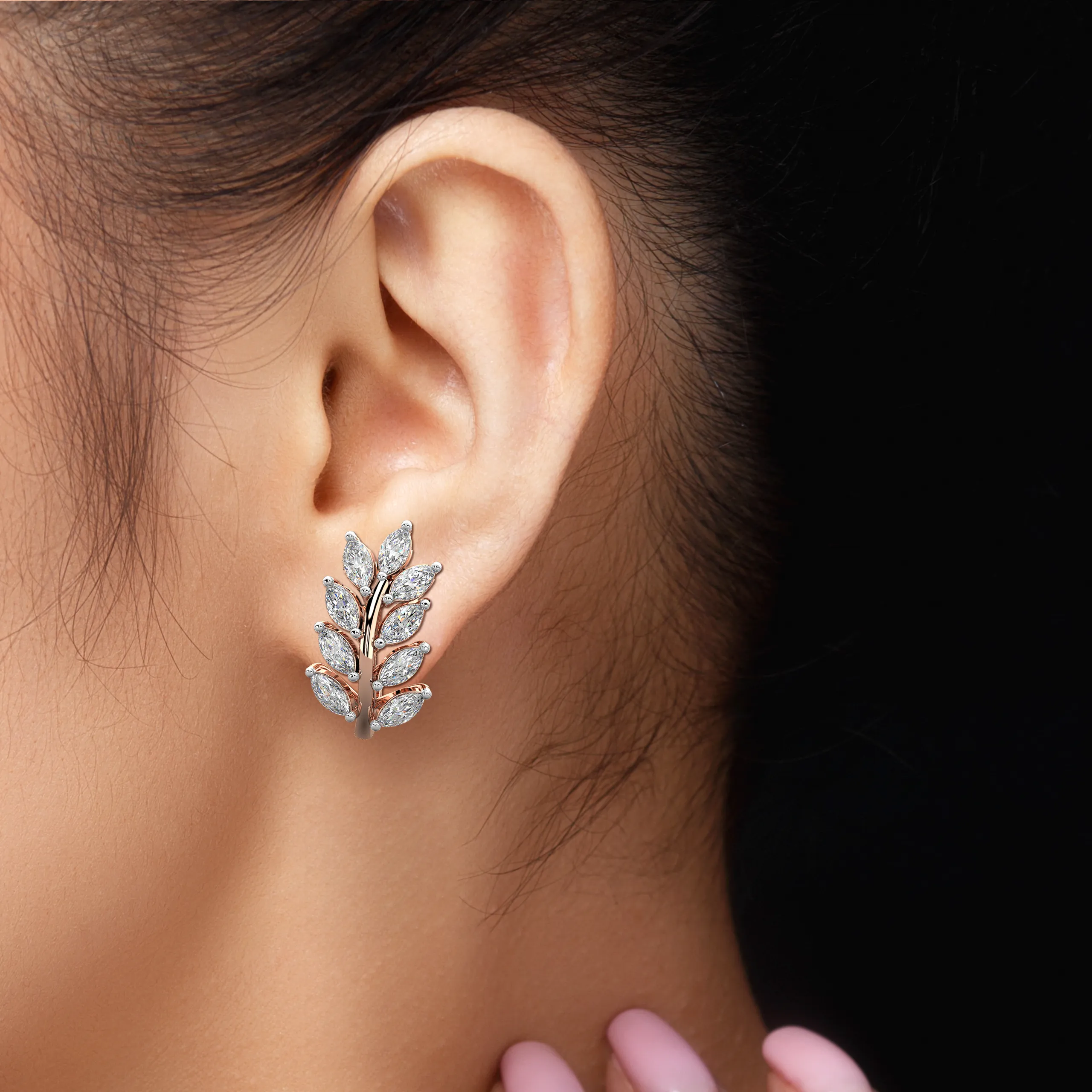 Elegant floral-inspired earrings featuring a graceful arrangement of marquise and round diamonds, radiating timeless beauty and sophistication.