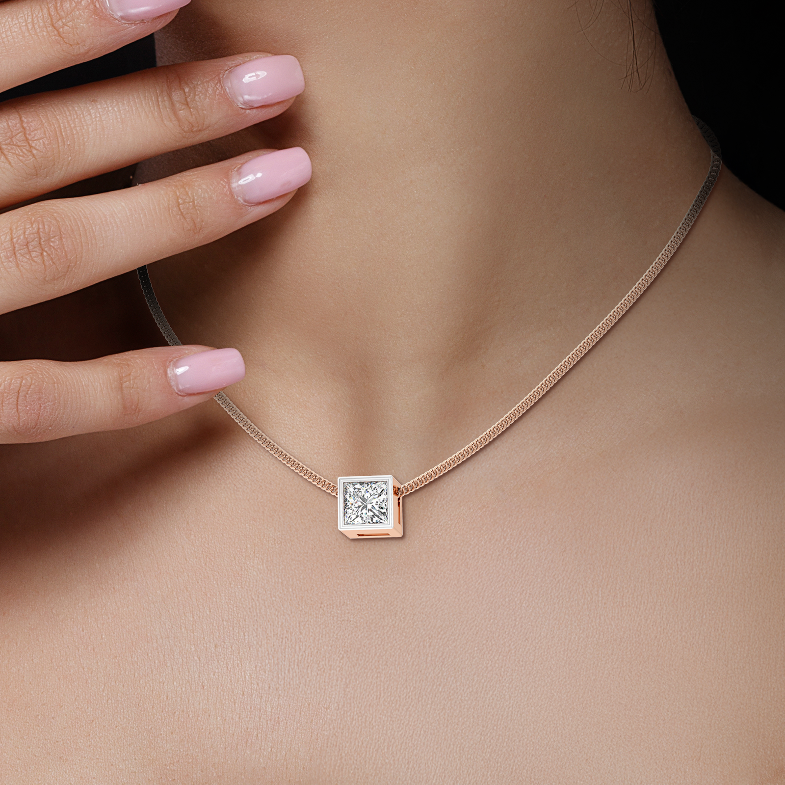 A sleek diamond pendant featuring a beautifully cut square diamond, crafted for timeless elegance and everyday wear.