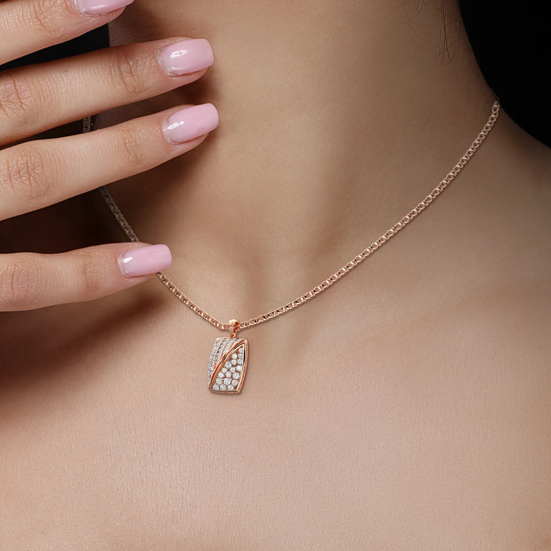 The Modern Luxe Diamond Pendant combines modern artistry with radiant diamonds, creating a striking statement of elegance and brilliance.