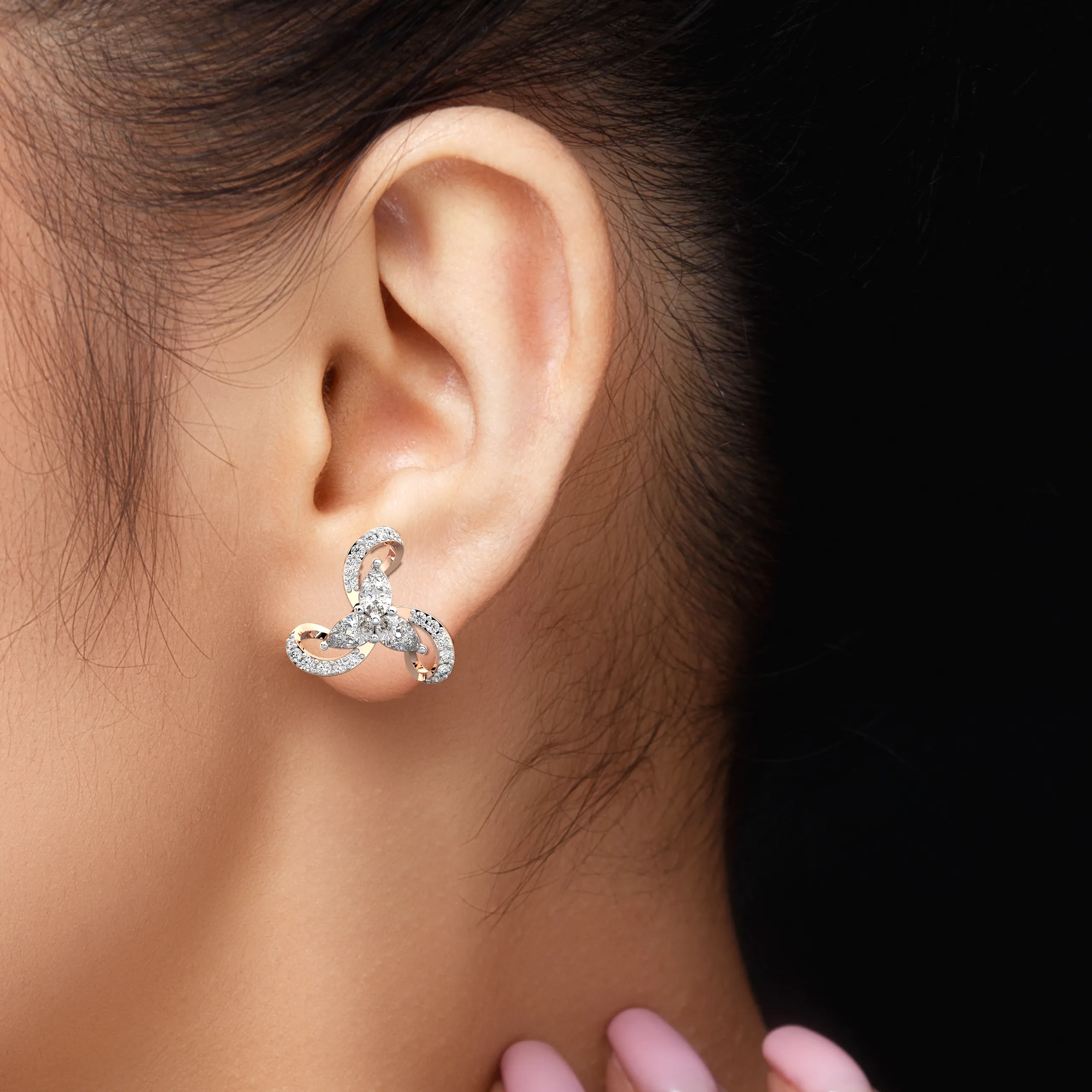 Adorn your ears with the Petal Bloom Diamond Earrings. This pair features delicate, petal-shaped designs, each set with diamonds, creating a floral-inspired elegance. The arrangement adds a refined touch to any ensemble, perfect for various occasions. These earrings present a radiant design, merging graceful shapes with brilliant sparkle.