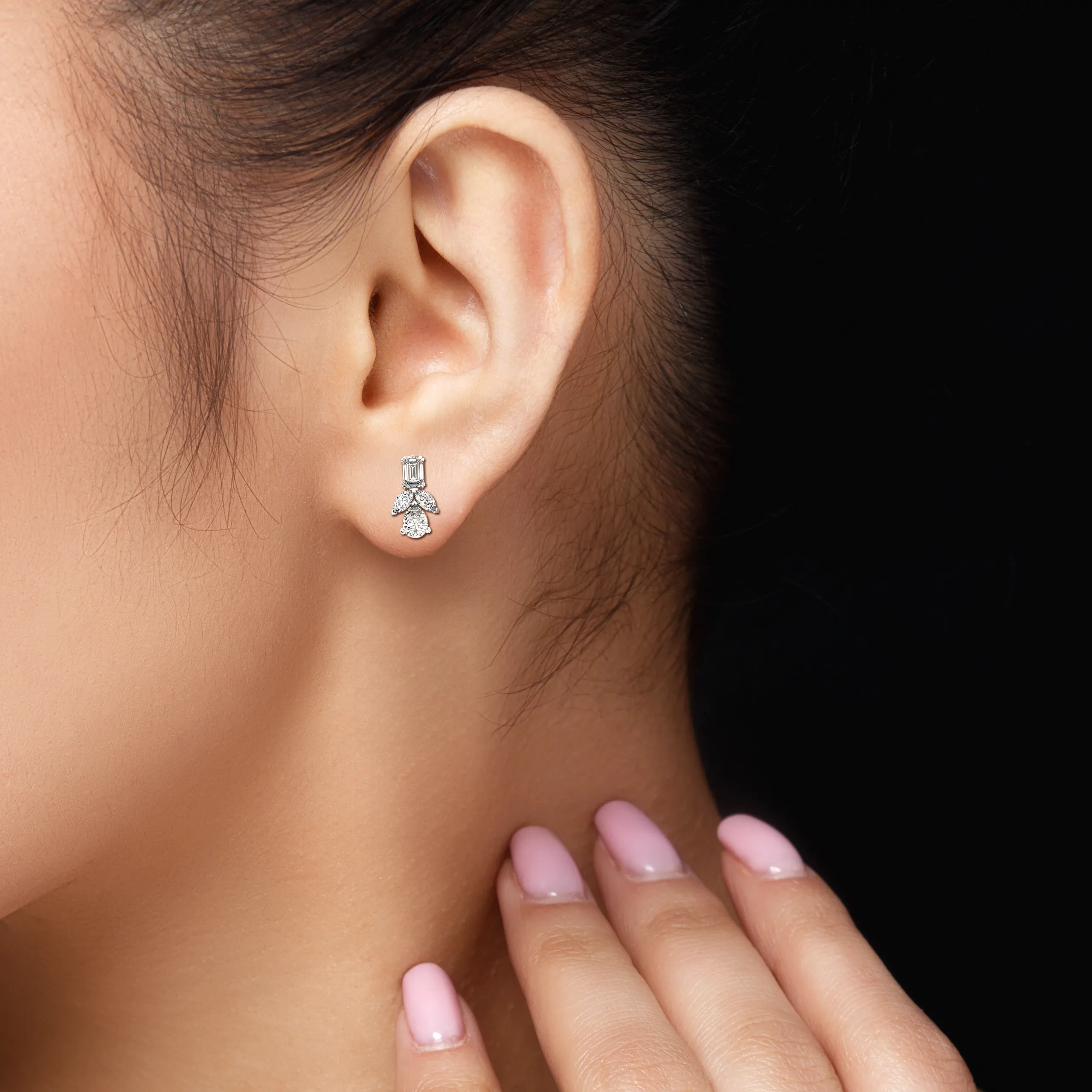 A delicate pair of earrings designed with glistening diamonds arranged in a petal-inspired silhouette, offering a soft sparkle with every move.