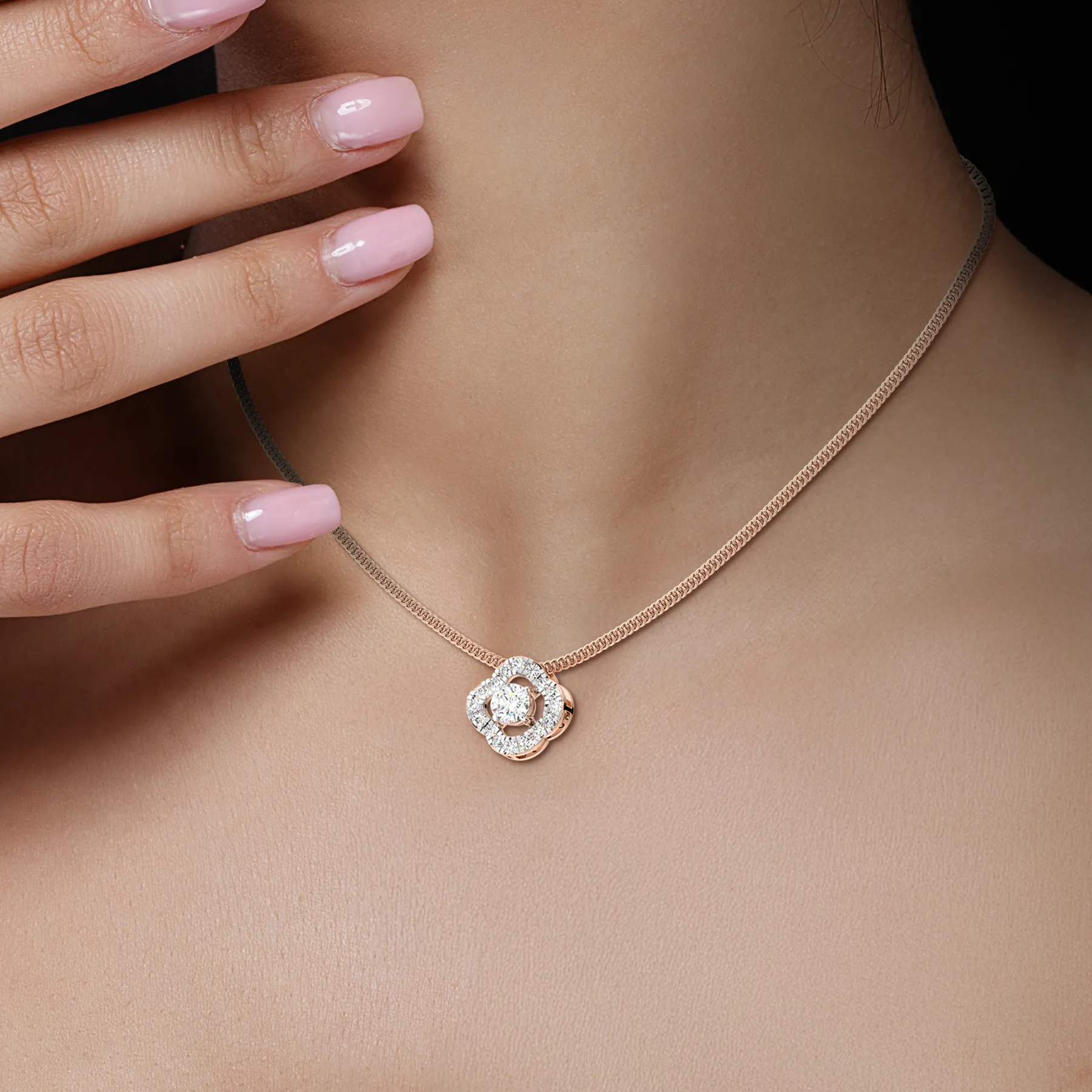 A floral-inspired diamond pendant featuring a dazzling round centerpiece surrounded by sparkling brilliance.
