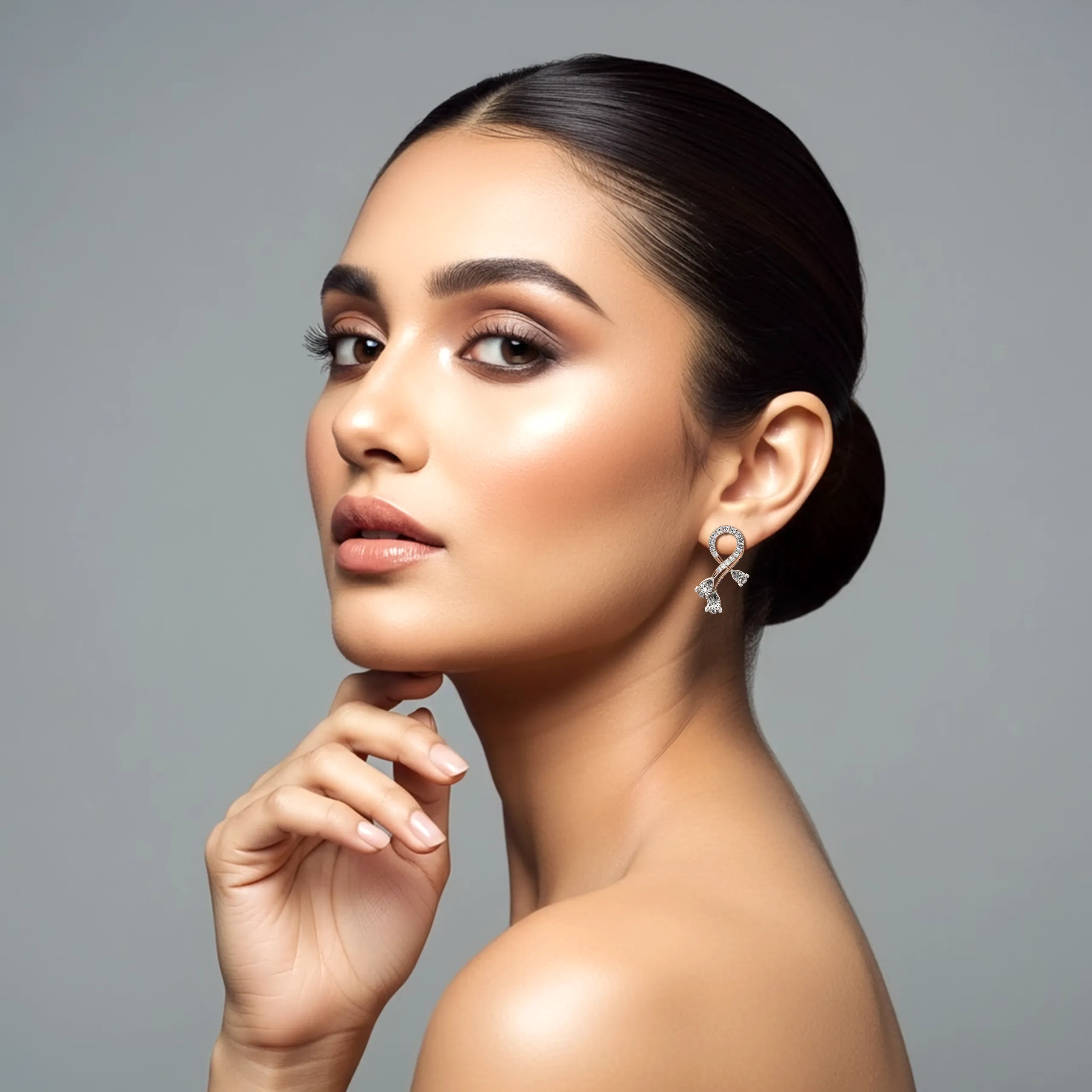 The Twilight Curve Diamond Earrings bring fluidity and elegance together in a design that feels both refined and expressive. Each earring features a gentle curve set with shimmering diamonds, flowing downward into delicately suspended pear-cut drops. The movement of the lower diamonds adds a dynamic sparkle, while the curved silhouette enhances the overall grace of the piece. Lightweight and full of charm, these earrings are ideal for elevating both everyday and special occasion looks with radiant brilliance.